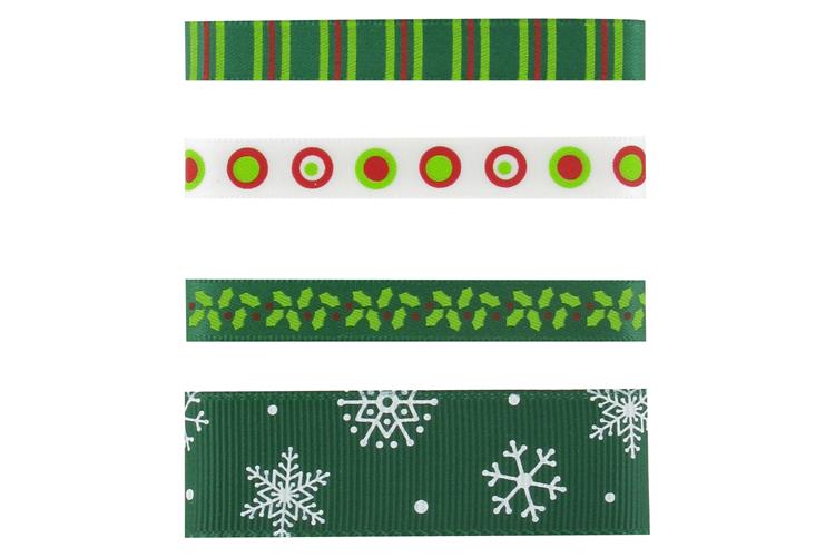 4 rubans "Noël vert", 90 cm chacun, largeurs 3 x 9 mm, 1 x 22 mm